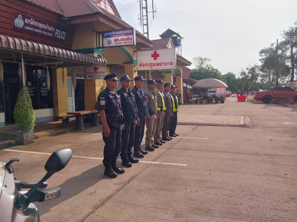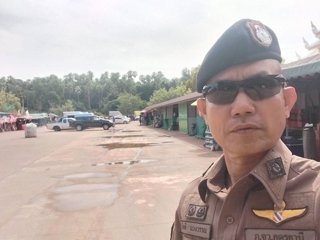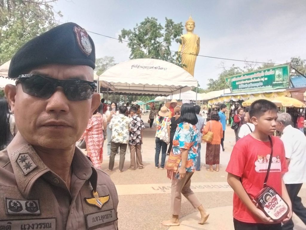 วันที่ 13 เมษายน 2568 ร.ต.ท.กิตติ แวงวรรณ รอง สว.(ป.)สภ.ดงเย็น นาคินทร์02 ปล่อยแถว อส.ตร กำชับการปฎิบัติในช่วงเทศกาลสงกรานต์ดูแลรักษาความปลอดภัยให้นักท่องเที่ยวและจราจร สถานที่ท่องเที่ยวคำชะโนด