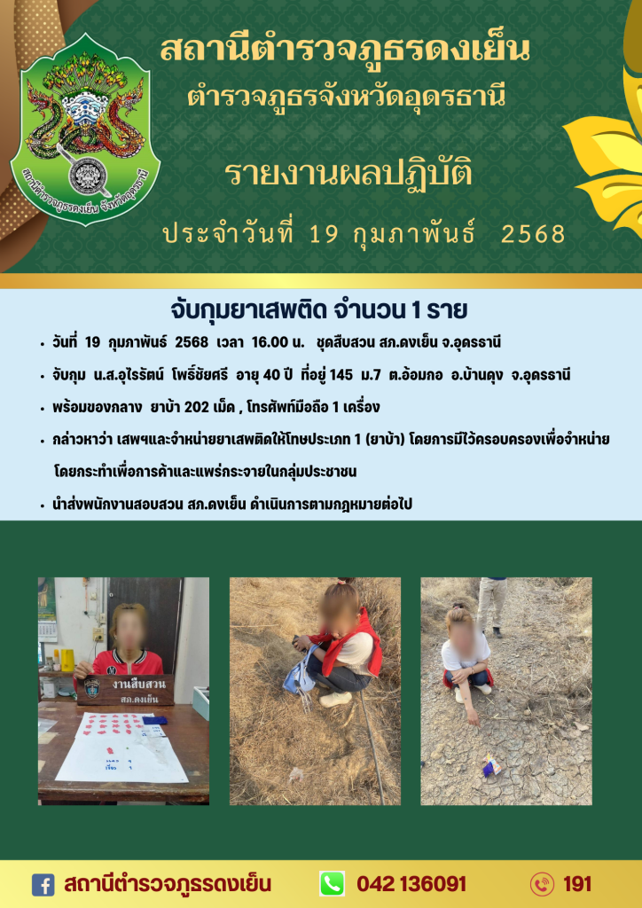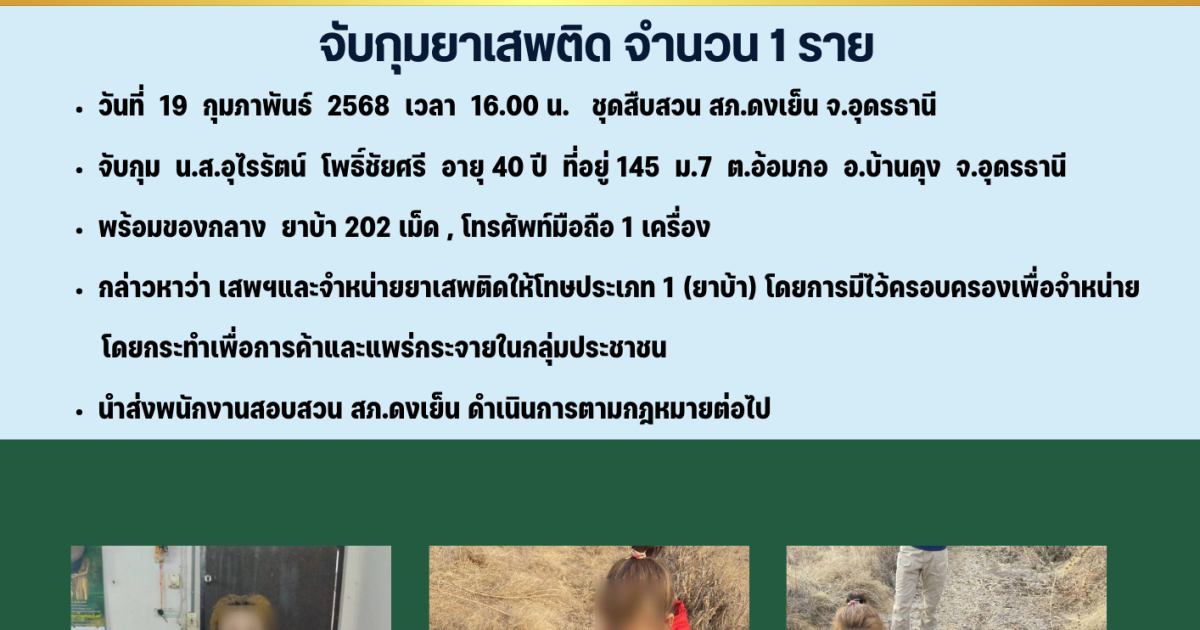 ผลการปฏิบัติงานสืบสวน 19 กุมภาพันธ์ 2568 4 เมษายน 2568 โดย admin / การปฎิบัติงานสืบสวนเดือนกุมภาพันธ์ 2568