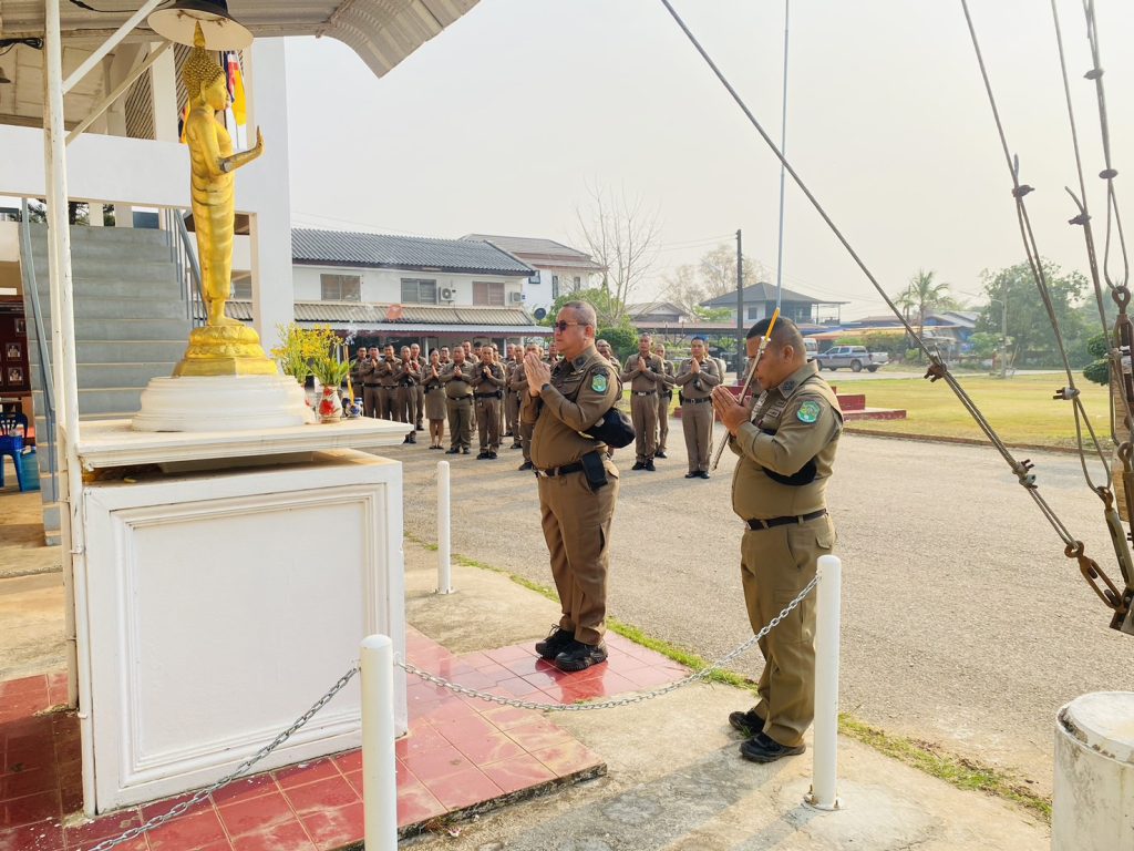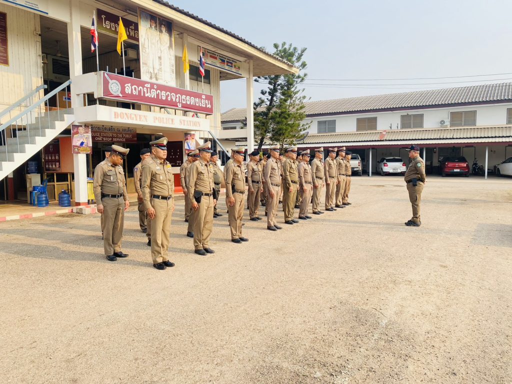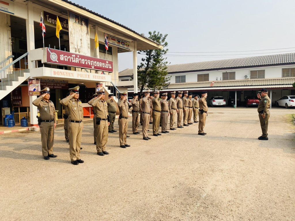 ร่วมแถวเคารพธงชาติ ประจำสัปดาห์ พร้อมแจ้งข้อราชการต่าง ๆ จากหน่วยเหนือ ณ สภ.ดงเย็น